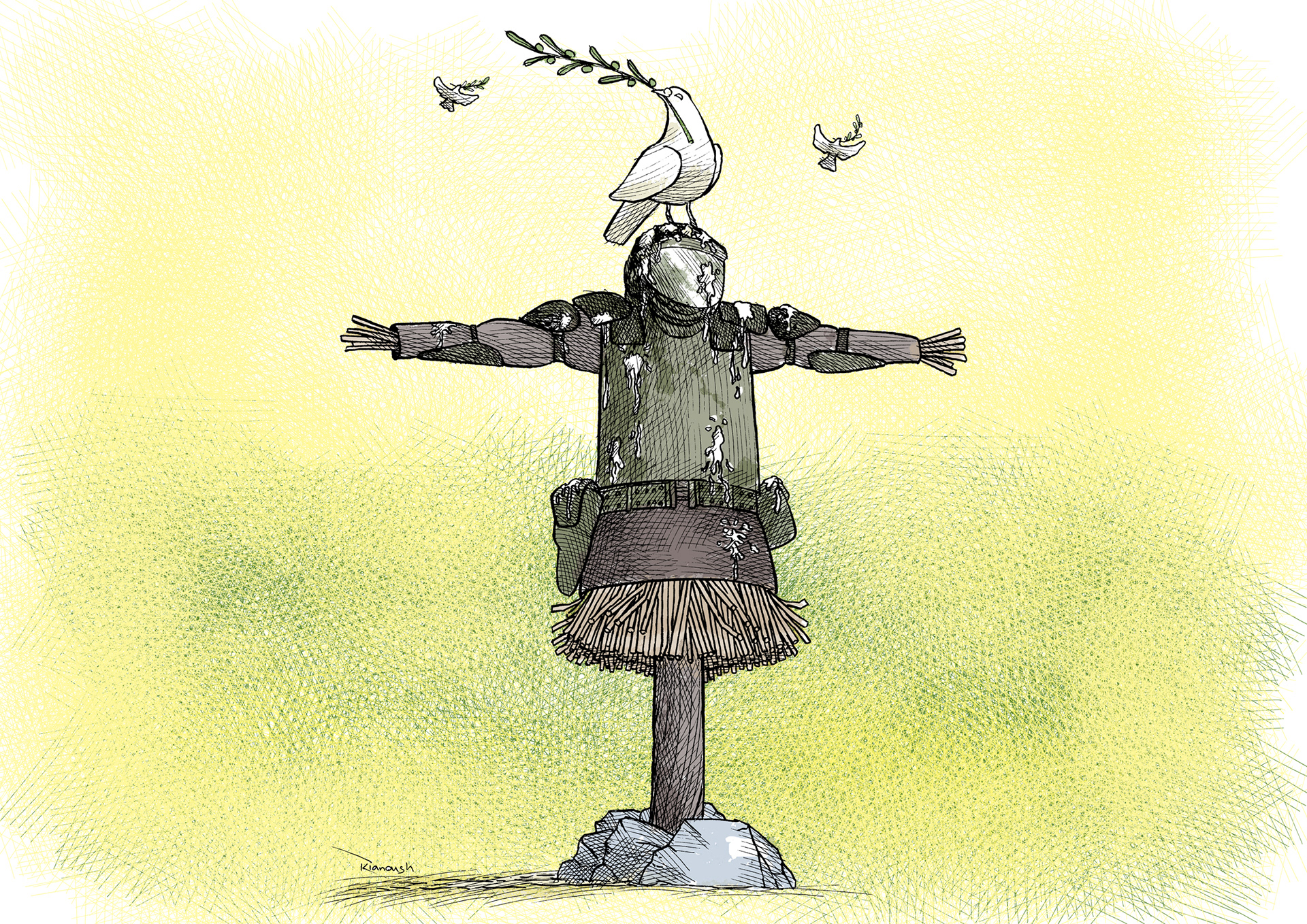 A Collection of Kianoush's political cartoons about War and Peace published in the media and journals